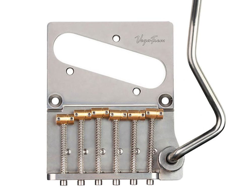 VegaTrem VT2 TeleTrem to system tremolo do gitar typu TE które fabrycznie nie posiadają możliwości zainstalowania ruchomego mostka. Rewelacyjny pomysł wykorzystuje otwory na struny do mocowania sprężyn a same struny zaczepiamy bezpośrednio w mostku tremolo. Mostek ten można zainstalować do każdej gitary wykorzystując do tego niewiele więcej jak odpowiedni wkrętak i kilku dołączonych wkrętów.