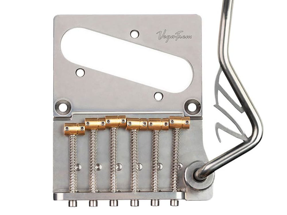 VegaTrem VT2 TeleTrem to system tremolo do gitar typu TE które fabrycznie nie posiadają możliwości zainstalowania ruchomego mostka. Rewelacyjny pomysł wykorzystuje otwory na struny do mocowania sprężyn a same struny zaczepiamy bezpośrednio w mostku tremolo. Mostek ten można zainstalować do każdej gitary wykorzystując do tego niewiele więcej jak odpowiedni wkrętak i kilku dołączonych wkrętów.