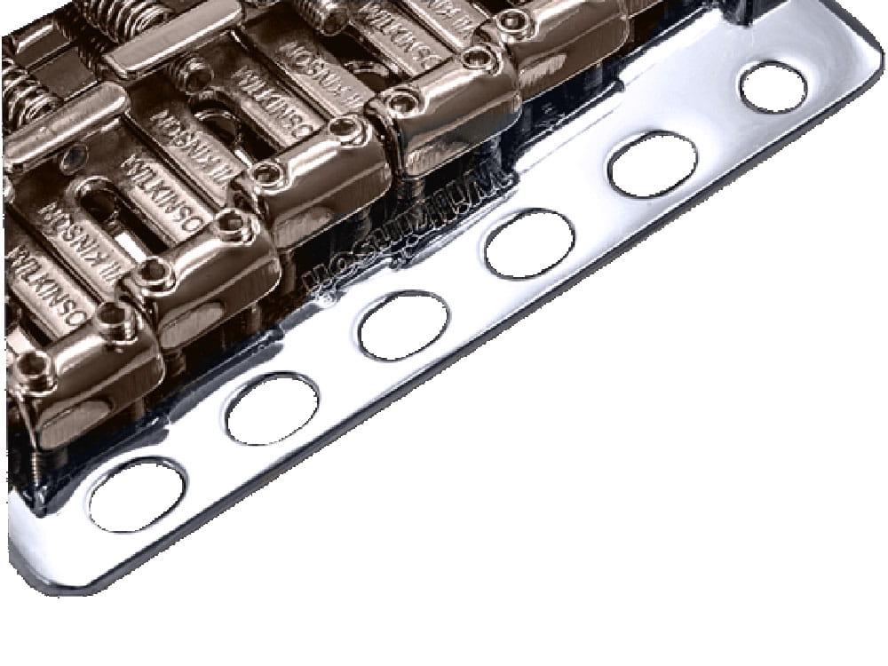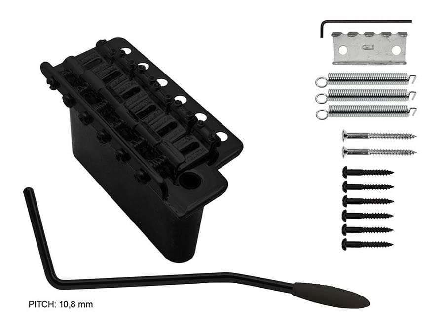 Wysokiej klasy klasyczne tremolo w stylu vintage. Wersja z pełnowymiarowym cynkowym blokiem i siodełkami z giętej hartowanej stali. Mostek posiada pięć owalnych otworów, pozwalających na jego instalację w instrumentach o rozstawie wkrętów typu vintage oraz gniazdo na ramię z gwintem wewnętrznym.W skład zestawu wchodzą śruby mocujące, wciskane ramię, uchwyt i 4 sprężyny.