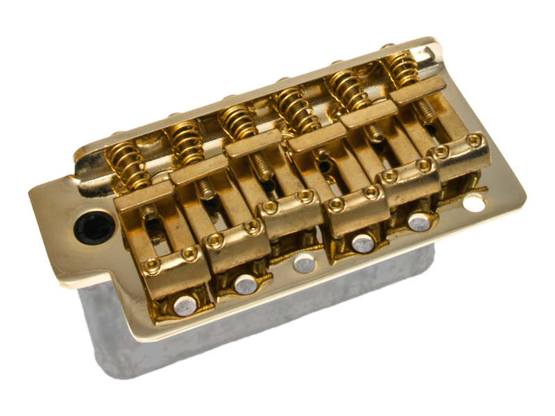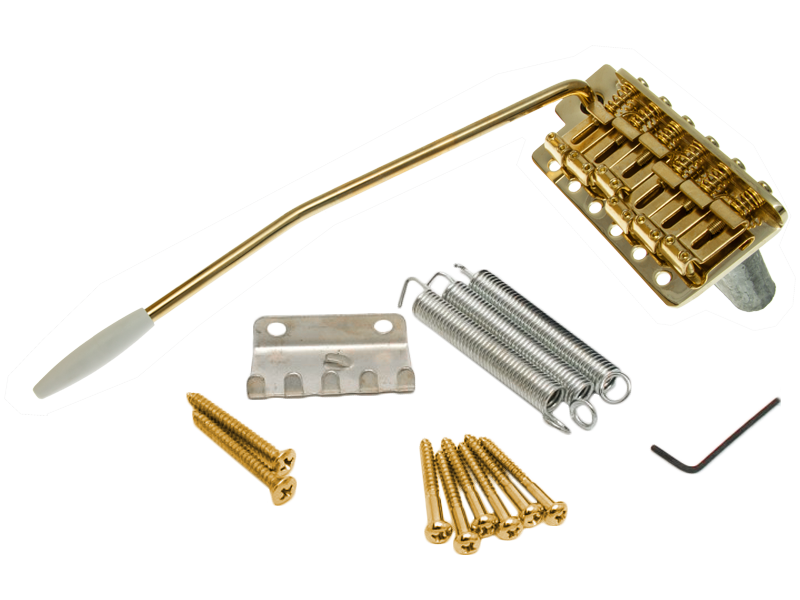 Tremolo typu vintage, mocowane na 6 wkrętów z siodełkami z giętej stali i pełnowymiarowym blokiem. W komplecie : gwintowane ramię, 3 sprężyny, zaczep sprężyn, kluczyk regulacji siodełek oraz 6 śrub mocujących.