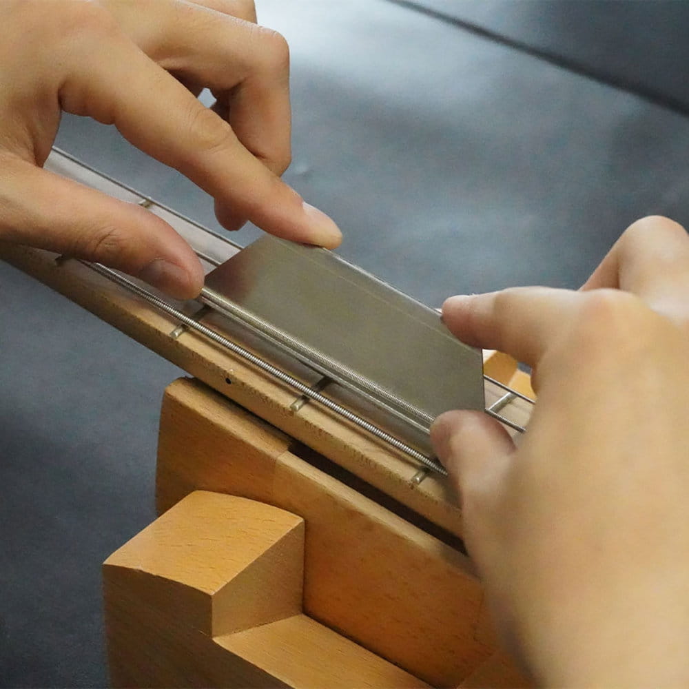 To narzędzie jest idealne do regulacji progów przy założonych strunach i sprawdzi się również przy progach ze stali nierdzewnej.